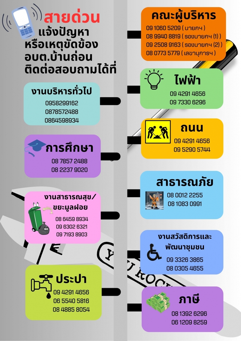 สายด่วนแจ้งเหตุขัดข้อง อบต.บ้านถ่อน...