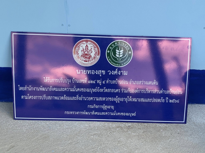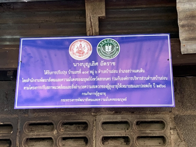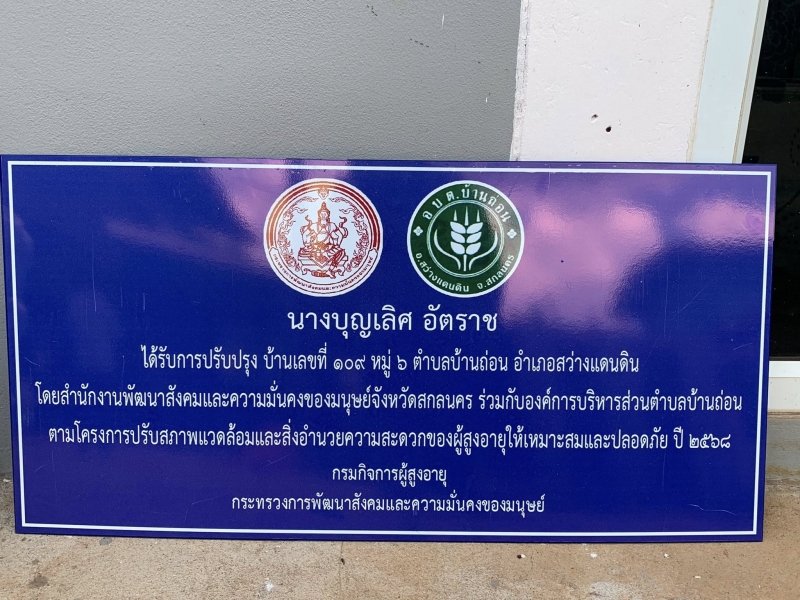 พัฒนาสังคมและความมั่นคงของมนุษย์ จังหวัดสกลนคร ร่วมกับ องค์การบริหารส่วนตำบลบ้านถ่อน มอบบ้านผู้สูงอายุ จำนวน 2 หลัง ตามโครงการปรับสภาพแวดล้อมและสิ่งอำนวยความสะดวกของผู้สูงอายุให้เหมาะสมและปลอดภัย ประจำปีงบประมาณ 2568 ได้แก่